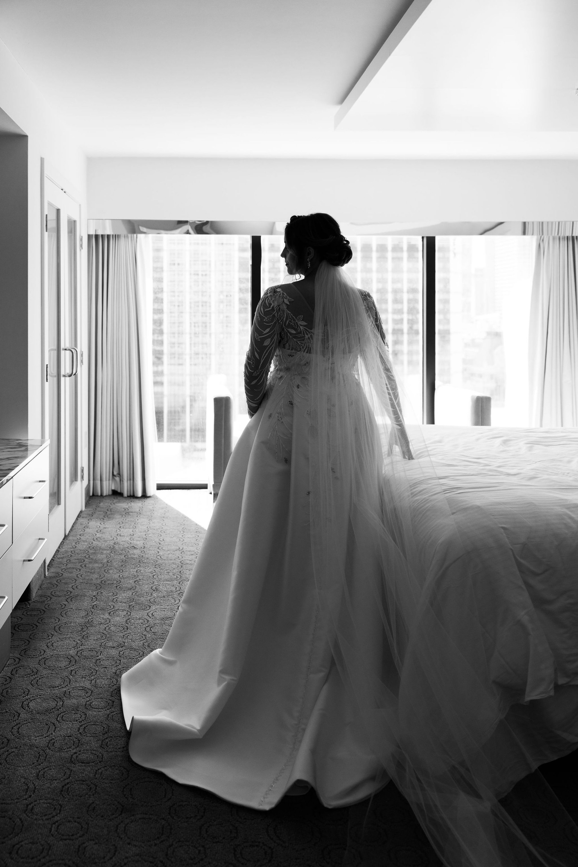 Designing and making my own sister's bridal gown was certainly something very special. I've been honored before making both my sisters' formal gowns over the years. Elaine chose a leafy lace to compliment her plunging neckline ballgown. To further add a personal touch, shades of purple crystals were added to the lace for a little color. The gown was made of mikado, featured a slit and was required to have pockets and buttons down the back. Crystal buttons were applied down the length of the entire train.